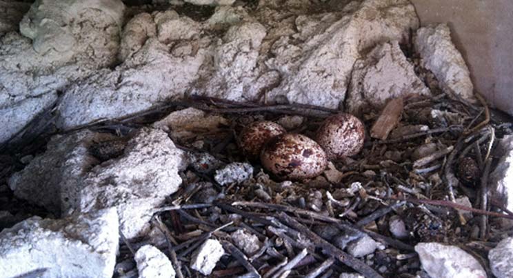 En 2012 se colocan 14 nidos bajo cubierta, 4 en la cubierta alta y 10 en la baja, todos ellos certificados para la nidificación de la especie.